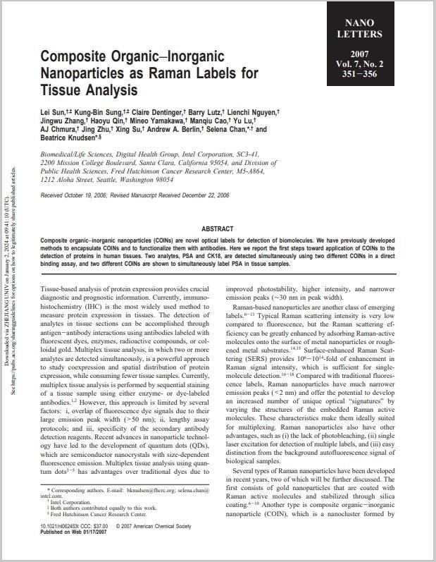 Composite Organic-Inorganic Nanoparticles as Raman Labels for Tissue Analysis